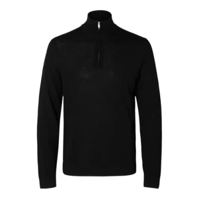 SELECTED HOMME Men's Slhtray Ls Knit Merino Half Zip Noos Pullover Sweater, Black, M