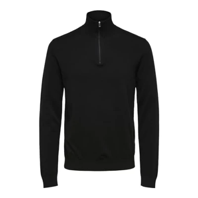 Selected Homme Slhberg HALF ZIP Jumper, Men's, Size: Medium, Black