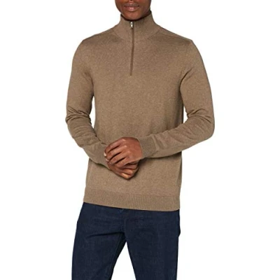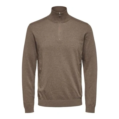 SELECTED HOMME Slhberg Men's Half Zip Cardigan B Noos Pullover, Teak/Detail: Melange, XL