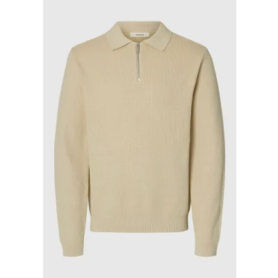 Selected Homme Slhdane LS Struc HALF ZIP NOOS Jumper, Men's, Size: Large, Oatmeal
