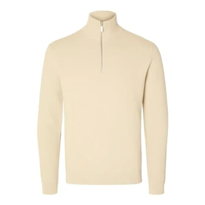Selected Homme Slhdane Structure HALF ZIP Jumper, Men's, Size: Medium, Oatmeal