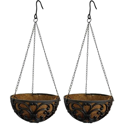 Selections Cast Iron Garden Hanging Basket Planters (25.5cm) Pack of 2