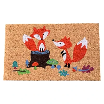 Selections Coir Outdoor & Indoor Doormat with Foxes in Woodland Design