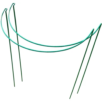 General description With these hoop supports, long-stemmed and pre-established plants can be supported smoothly and easily when needed. The hooped plant stakes can be used singly, in pairs, linked in a chain, or back to back to create a plant frame surrounding the plant with a complete circle. This enables a variety of supports to be created, providing support for individual plants to large groups. Technical specifications Dimensions: 60cm x 25cm x 45cm Thickness: 5mm Sold in a set of 2 Installation Easy installation Usage Flexible shapes for various plant support needs