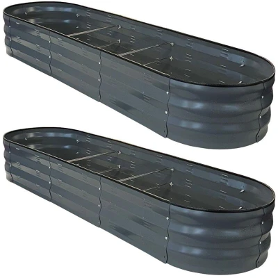 Selections Large Metal Oval Raised Bed Garden Planter in Dark Grey (Pack of 2)