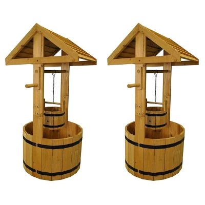 Selections Large Outdoor Wooden Wishing Well Garden Planters (Pack of 2)