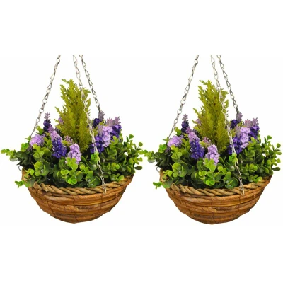 Selections Pack of 2 Artificial Hanging Baskets (Lavender)