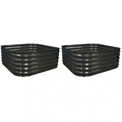 Selections Pack of 2 Corrugated Metal Raised Beds Garden Planter in Dark Grey