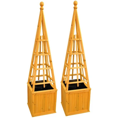 Selections Pack of 2 x Wooden Obelisk Garden Planters