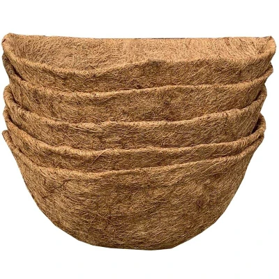 General description These co-co liners are pre-shaped for convenience, allowing you to simply drop them into a basket for easy planting. Made from long-lasting co-co fibers, they provide support for your plants while creating a free-draining environment. Additionally, they prevent soil or compost from washing away, and the matted fiber helps retain the moisture your plants need to flourish. Technical specifications Dimensions: 40cm L x 20cm W x 22cm H (approx) Material: Long-lasting natural co-co fibers Quantity: Set of 5