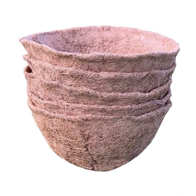 General description These co-co liners are pre-shaped for convenience, allowing you to simply drop them into a hanging basket for easy planting. Made from long-lasting co-co fibers, they provide excellent support for your plants while creating a free-draining environment that prevents soil or compost from washing away. The thick liners feature a rolled edge for added strength and the matted fiber helps retain the moisture your plants need to flourish. Technical specifications Diameter: 25 cm Height: 13 cm (approx) Set of 5 liners