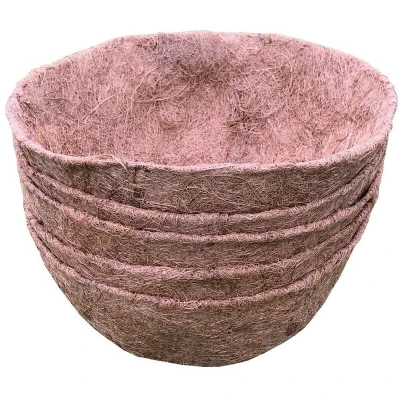 General description These co-co liners are pre-shaped for convenience, allowing you to simply drop them into a hanging basket for easy planting. Made from long-lasting co-co fibers, they provide excellent support for your plants while creating a free-draining environment that prevents soil or compost from washing away. The matted fiber also helps retain the moisture your plants need to flourish. Technical specifications Diameter: 30 cm Height: 16 cm (approx) Material: Natural co-co fibers Set of 5 liners