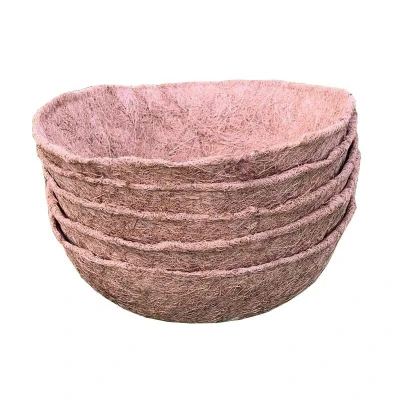 General description These co-co liners are pre-shaped for convenience, allowing you to simply drop them into a hanging basket for easy planting. Made from long-lasting co-co fibers, they provide excellent support for your plants while creating a free-draining environment that prevents soil or compost from washing away. The matted fiber also helps retain the moisture your plants need to flourish. Technical specifications Diameter: 35 cm Height: 17 cm (approx) Material: Natural co-co fibers Set of 5 liners