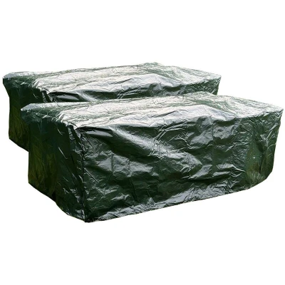 General description This pack of 2 waterproof garden table covers is designed to provide robust protection for your outdoor furniture. Made from strong, hard-wearing woven polyethylene, these covers are double laminated to enhance their weather resistance. They are resistant to dust, rain, dew, and other debris, ensuring your garden table remains clean and dry. Technical specifications Material: Woven polyethylene Dimensions: 203 cm (length) x 102 cm (width) x 69 cm (height) Features: Double laminated, tear and rip resistant, sturdy stitched seams Other information Includes metal eyelets at the corners for anchoring Easy to clean and compact for storage Pack of 2