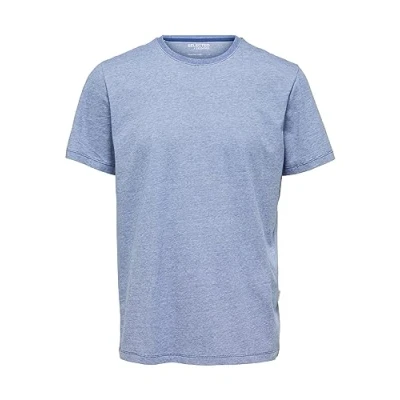 SELETED HOMME Men's Slhaspen Mini Str SS O Neck Tee W Noos T Shirt, Limoges/Stripes: Bright White, L