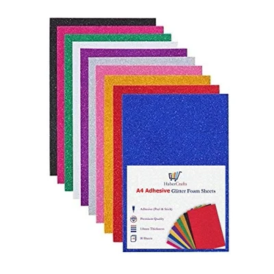 HaberCrafts Easy Peel And Stick Self Adhesive Bright Sparkly Glitter Foam Made Of Durable EVA Foam That Shimmer And Shine For Impressive Arts And Crafts A4 Size (210mm X 297mm) Sheets Perfect For Making Your Own Glittery Decorations, Stickers, Name Tags, Ornaments, Cards And Much More, Let Your Creativity Shine. Easily Cut To Size, Our Thick 1.8mm Sticky Adhesive Sheets Are Still Flexible Allowing You Make The Most Intricate Of Homemade Decorations, Crafts, Gifts And Cards Acid Free And Non Toxic Making Them Perfect For Adding An Impressive Glittery Touch To All Your Crafts And Handmade Decorations, Bursting With Stunning, Striking Shades That Boast A Perfect Glitter Shimmer. Available In Full Range Of 10 Colours (Black, Blue, Bright Pink, Gold, Green, Light Pink, Purple, Red, Silver, White & Assorted) And Sheet Packs (1, 3, 5 & 10 Sheets) To Bring You The Best Price For All Your Project & Craft Needs No Matter The Size (Please See Variation Options)