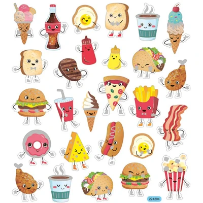 AmazonStickers, fast food, 15x16,5 cm, 1 sheet Brighten up your creative projects and anything else you feel like with these easy-to-use stickers The stickers feature motifs on a thin, slightly transparent plastic film, with the finest details in silver foil and glitter lacquer