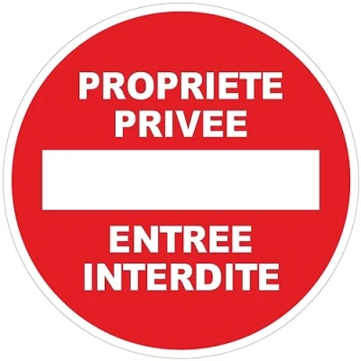 Self Adhesive Safety Sign, Rigid Round, Adhesive, Laminated, Waterproof and UV Resistant, Private Property, No Entrance, Diameter 24cm