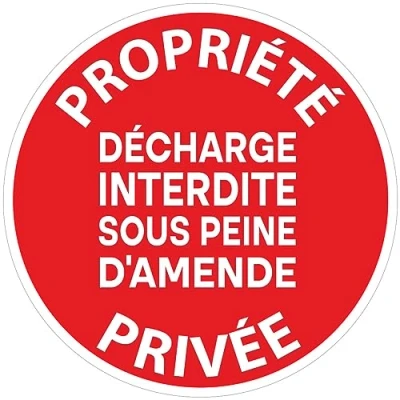 Self Adhesive Safety Sign, Rigid, Round, Laminated, Waterproof and UV Resistant, Private Property, No Discharge, Diameter 24 cm