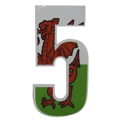 Self Adhesive Wheelie Bin Numbers 17cm 5 Welsh Dragon Design