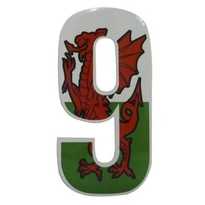 Self Adhesive Wheelie Bin Numbers 17cm 9 Welsh Dragon Design