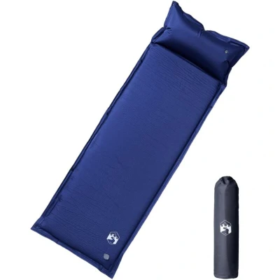 Self Inflating Camping Mattress with Pillow 1 Person Navy Blue Vidaxl