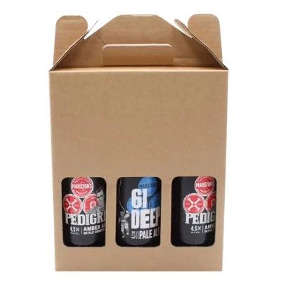 SelfHold 330ml Or 500ml Beer, Ale, Cider Bottle Carrier Gift Box (215 x 70 260mm) Cardboard Holder Home Brew 3 Display Windows Ideal for Brew, Gifts, Parties, and Occasions (25)