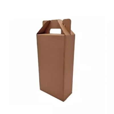 SelfHold Large Wine Bottle Carrier Brown Gable Gift Box, Holds 2 Bottles (10 Pack)