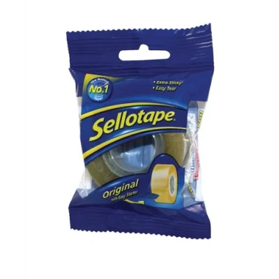 The nation's favourite sticky tape. Extra strong and extra sticky. Golden in colour, but clear when applied. Easy tear, no need for teeth. Small core. Size: 24mm x 33m. Pack of 6.