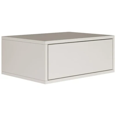Selsey Bedside Table Hanging Floating White Colour 50 W x 36 D 20.8 H cm Cabinet with Drawer in Minimalist Push to Open Scandinavian Space Saving Wall Mounting Frame