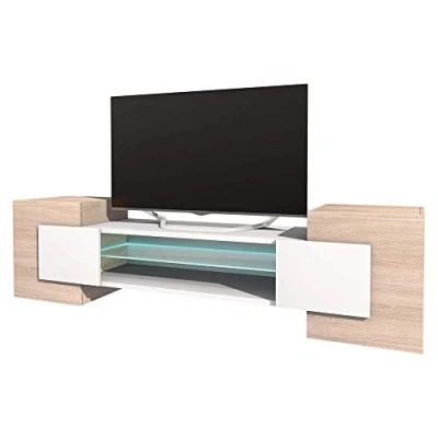 SELSEY Gaelin TV Stand/Modern Entertainment Unit/Living Room Cabinet with Storage (160 cm) (With LED, Oak/White)