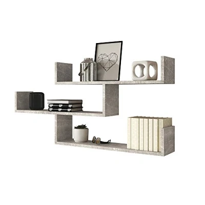 Selsey Kassi Wall Shelf, Hanging Bookcase with 3 Shelves, 55 x 119 cm (Concrete Smart)