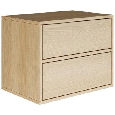 Wall cabinet - part of the FRAMME collection. Mounted as a bedside table hanging or floating bedside table, it saves valuable floor space and provides an airy, modern room effect. Ideal for small bedrooms, apartments or guest rooms where functionality and design go hand in hand. Two drawers for more order - The integrated drawers in the hanging bedside table provide generous storage space for books, glasses, chargers or personal items. Everything remains within easy reach, while the shelf can be used freely for decoration. Push-to-open system - Thanks to the handle-less front, the drawer opens gently by light pressure. The hanging bedside cabinet remains so puristic and elegant, without annoying handles, and at the same time offers maximum ease of use in everyday life. Laminated chipboard - Made from durable, easy-care and scratch-resistant laminated chipboard. The floating bedside table retains its shape and surface even with daily use, is easy to clean and impresses with its durable quality. Made in the European Union - Produced within the EU to high quality and design standards. This wall bedside table combines craftsmanship precision, aesthetic clarity and functionality in a timeless piece of furniture.