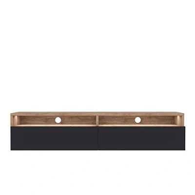 Selsey REDNAW Modern TV Stand/TV Cabinet with 2 Drawers / 140 cm/Wotan Oak/Black Gloss/LED lighting