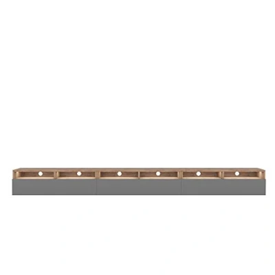 Selsey REDNAW Modern TV Stand/TV Cabinet with 3 Drawers / 300 cm/Wotan Oak/Grey Gloss/LED lighting