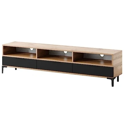 Selsey Rikke Tv Stand Cabinet Entertainment Unit Wotan Oak Black Gloss