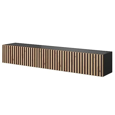 SELSEY Telire Wall Mounted Wooden TV Cabinet 175 x 31 30 cm, Artisan Oak Fronts/Black Body, Fits up to 75'' TV, MDF/Laminated Board, Spacious Compartments, Ideal for Living Room, Modern/Boho Style