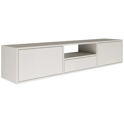 Selsey TV Lowboard White Colour Modern Chest of Drawers 150 x 30 cm (W D H) Base Cabinet for Living Room with Flaps Push to Open Hanging Wall Mounted