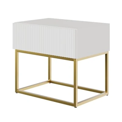 Selsey Veldio Bedside Table with Drawer, White Gold Metal Frame, 50 cm