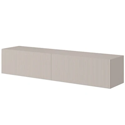 Elevate Your Living Space: Add a touch of sophistication with the Veldio TV cabinet, designed to complement any modern interior. Standing out with its matte taupe-grey finish and decorative milled slats, it harmoniously blends with your decor and plants, fully transforming your living room into a stylish sanctuary where form meets function. Experience how seamlessly design integrates with practicality, making it an ideal wooden TV cabinet choice. Instant Organisation Solution: Say goodbye to clutter and hello to a tidy living area with the Veldio TV cabinet's spacious compartments. The downward-opening fronts provide easy access, creating a perfect wooden TV unit with enough space to store your RTV accessories or essential documents. Enjoy the peace of mind that comes with a well-organised space, where everything has its place, keeping your living area neat and serene. Durability Meets Style: Invest in lasting quality with the Veldio TV cabinet crafted from 16 mm laminated board offering exceptional resistance to moisture and scratches. The MDF slatted fronts and ABS edges ensure a durable build, making it not just an elegant piece but a robust wooden TV stand that will stand the test of time. Relieve your worries about wear and tear, as your cabinet maintains its elegance despite everyday use. Effortless Installation: This fully assembled and ready-to-hang Veldio TV cabinet saves you time and hassle. Enjoy immediate gratification by simply installing it and experiencing a designer look in your living room without any complex setup. Ideal for those who want convenience without compromising on aesthetics, making it a long TV unit that enhances your interior instantly. Capture Your Memories: Showcase your personal style and cherished memories on the wide top surface of the Veldio TV cabinet. Perfect for displaying family photos or treasured mementos, it enhances your living space while keeping your past and present on display – creating not just a functional piece of furniture, but an entertainment unit that reflects your life's story in a beautifully tangible way.