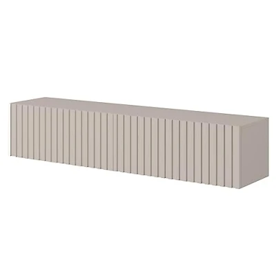 Elegant Design for Modern Interiors: The Selsey Telire wooden TV cabinet effortlessly blends into modern, boho, or industrial spaces with its taupe grey body and chic slatted fronts. It crafts an elegant, cohesive look that turns your living room into a cozy haven, meeting the most sophisticated style aspirations. Ample Storage Capacity: With two spacious compartments cleverly concealed behind downward-opening fronts, this large TV unit organizes your entertainment essentials seamlessly. No more clutter with space for your RTV accessories and important documents, enhancing both aesthetics and functionality. Durable Craftsmanship for Longevity: Constructed from 16 mm laminated board, this wooden TV stand offers superior resistance to moisture and scratches. It promises enduring quality and timeless elegance, creating a TV cabinet you can rely on for years while maintaining its premium appearance. Versatile Top Surface for Personal Touch: The expansive 138.6 cm wide top is perfect for setting personal décor, family photos, or your favourite items, complementing the serene atmosphere of your living room. Personalize your space effortlessly with a beautiful center-point for self-expression. Optimal Fit for Large TVs: This TV stand cabinet accommodates TVs up to 60 inches, effortlessly supporting your entertainment needs. Whether it's movie night or binge-watching your favourite series, this TV unit assures an unobstructed, immersive viewing experience, elevating leisure times.