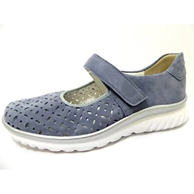 Amazon Summer comfort ballerina with functional instep Velcro bandage and airy perforation in the leaf. Lightweight, flexible and roll-dynamic outsole. Softly padded variable footbed.