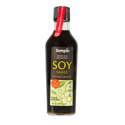 Sempio Korean Gluten-Free Soy Sauce 250ml is a naturally brewed, premium soy sauce made from non-GMO soybeans and sea salt, offering a rich umami flavor without wheat. Certified Vegan, Gluten-Free, and Non-GMO, it's versatile for marinades, dipping, stir-fries, and soups. Made in South Korea.