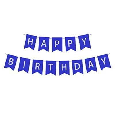 Senmaid Happy Birthday Banner Blue, Boys Large Hanging Bunting Garland Party Decoration for Kids Deep Blue