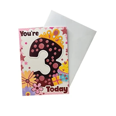 Sensations / Xpress Yourself Birthday Card for Age 3 Girl Includes Envelope Princess Crown and Ice Cream Design, pinkyellowbeigeblue