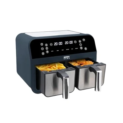 Sensio Home Dual Basket Zone Air Fryer, 8 in 1 with Smart Sync Finish, Bake, Dehydrate, Reheat, 8L, Deep Non Stick Baskets, Uses No Oil, Digital Display, Family Size Healthy Oil Free Cooking, 2400W
