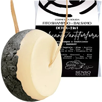 Senso Naturale 2in1 Detox Shampoo & Conditioner Bar with Charcoal, Tea Tree Mint For Oily Hair Scalp, Anti Dandruff Purifying, Balancing Refreshing Vegan Organic 75g (Lasts 3 Months)
