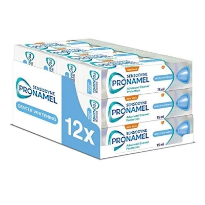 Contains 12 sensodyne pronamel whitening toothpaste 75ml units Protects against the effects of acid erosion Restores natural whiteness Cleans teeth and freshens breath Suitable for people with sensitive teeth