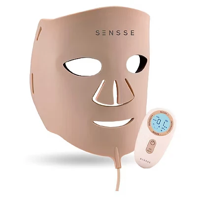 The SENSSE Elite 8 Light LED Face Mask SNSE30 is a wireless, rechargeable skincare device featuring 276 LEDs, 8 colour modes (including near infrared), and 3 intensity levels to target fine lines, uneven tone, blemishes, and more, with a comfortable soft silicone fit for all skin types.