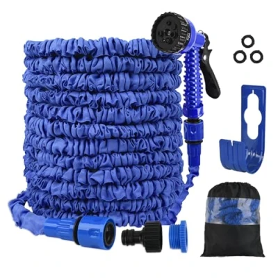 AmazonStretchable: Flexible garden hose expands from 33.3ft to full length of 100ft in a short time under water pressure; ideal for watering the garden, lawn, pool or pond;the watering hose automatically retracts to its original compact size when the water stops flowing 7 function modes:Fulfill all your gardening needs with a wide array of options, including flat, center, cone, full, mist, jet, and shower modes. The hose reel can be used for multiple purposes indoor and outdoor watering needs. Includes accessories:Flexible hose with adapters for any tap with 1/2 inch and 3/4 inch thread; Connector for combining multiple hoses for even more range multifunctional use:This hose is great for many watering and cleaning uses for garden, lawn, yard, workshop, car-washing shop, RV, house, pool, boat cleaning, bathing dogs pets, etc. after-sales service:We attach great importance to the buyer’s shopping experience. If you find any problems with our water hosepipe, please feel free to contact us, we will solve it within 24 hours., Manufacturer: SENTAIMAO